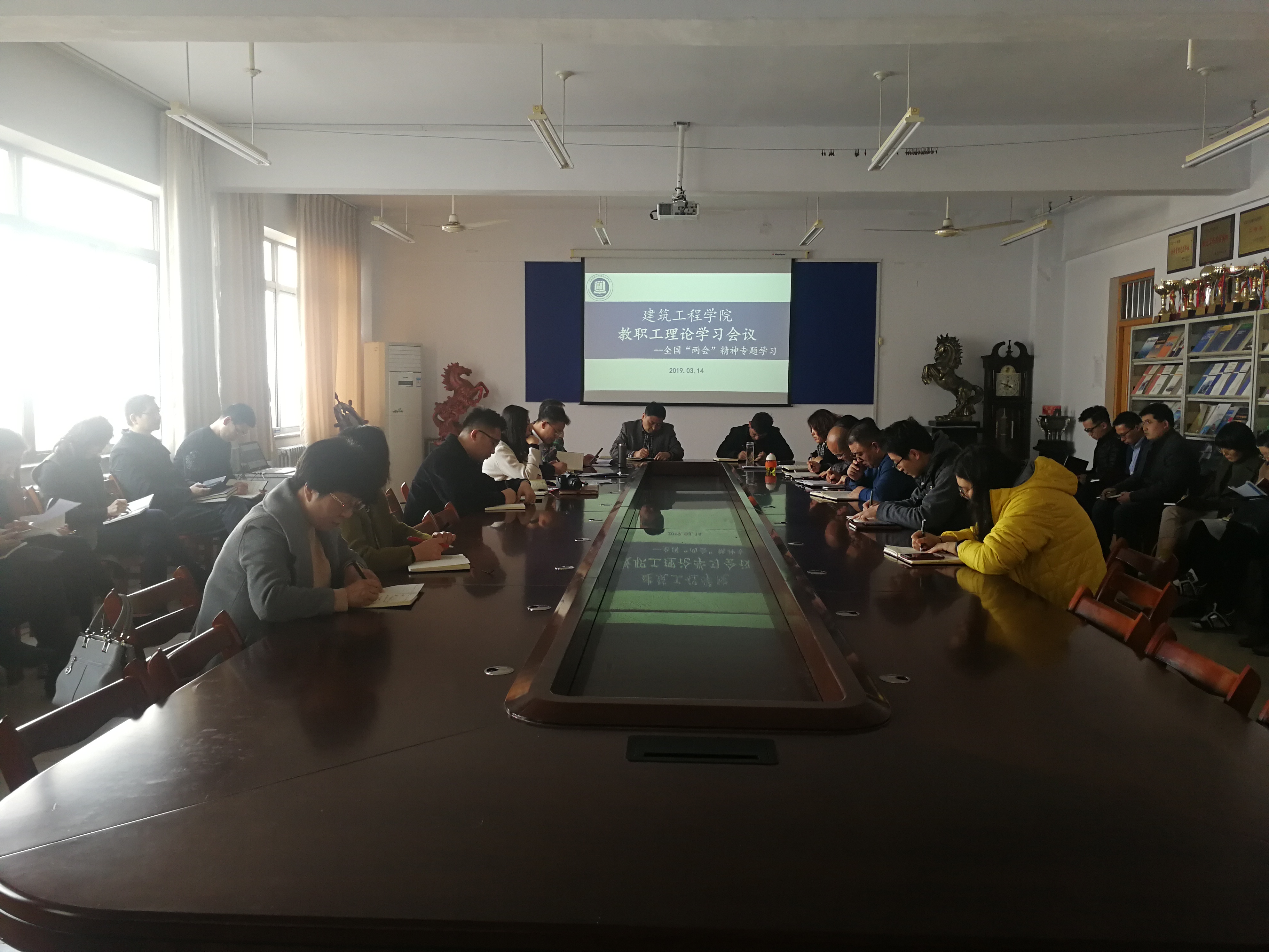 3月14日,欧洲杯买足球软件于工程楼会议室组织学习全国“两会”精神与李克强总理的政府工作报告,党委书记唐传成、院长李秋义出席会议,学院全体教职工参与学习。