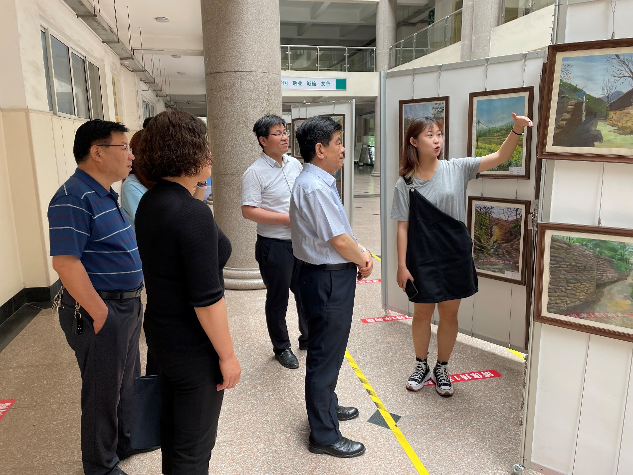 6月15日至20日,欧洲杯买足球软件在教学楼C区一楼大厅举办了2021年度建筑学写生作品汇报展。本次汇报展以“庆祝中国共产党建党100周年”为思想基调,以“杨集印象”为表现主题,以近百幅画作展示了建筑学2019级、2020级学子在专业写生实习中的收获和感悟。此次汇报展邀请了校党委委员、副校长田义轲及教务处副处长潘军到现场进行指导,学院党政领导班子陪同前往。
