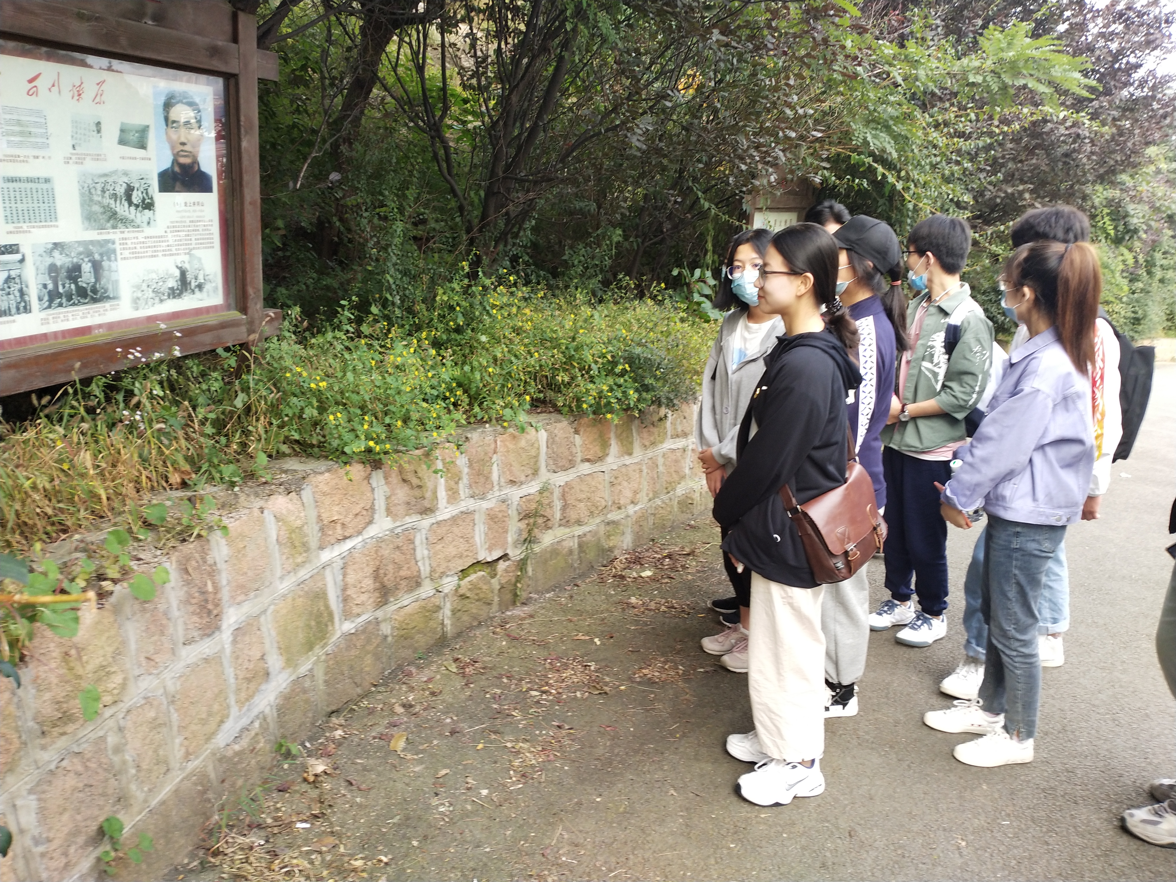 爬山途中,同学们在老师的带领下仔细阅读了毛公山沿路的宣传牌,通过阅读红色故事、观看画册、图片让全体同学对党的艰苦奋斗历程有了更为深刻的认识,涵养了同学们的爱国之情。