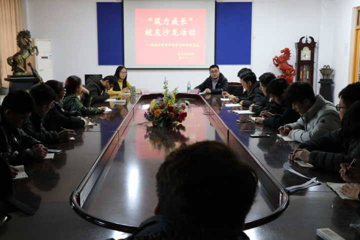11月18日,欧洲杯买足球软件于工程楼会议室举办铭记责任与担当——“筑力成长”校友沙龙座谈会,院团委书记刘园园、辅导员江守林出席活动,2017届学生会学生干部参加活动。