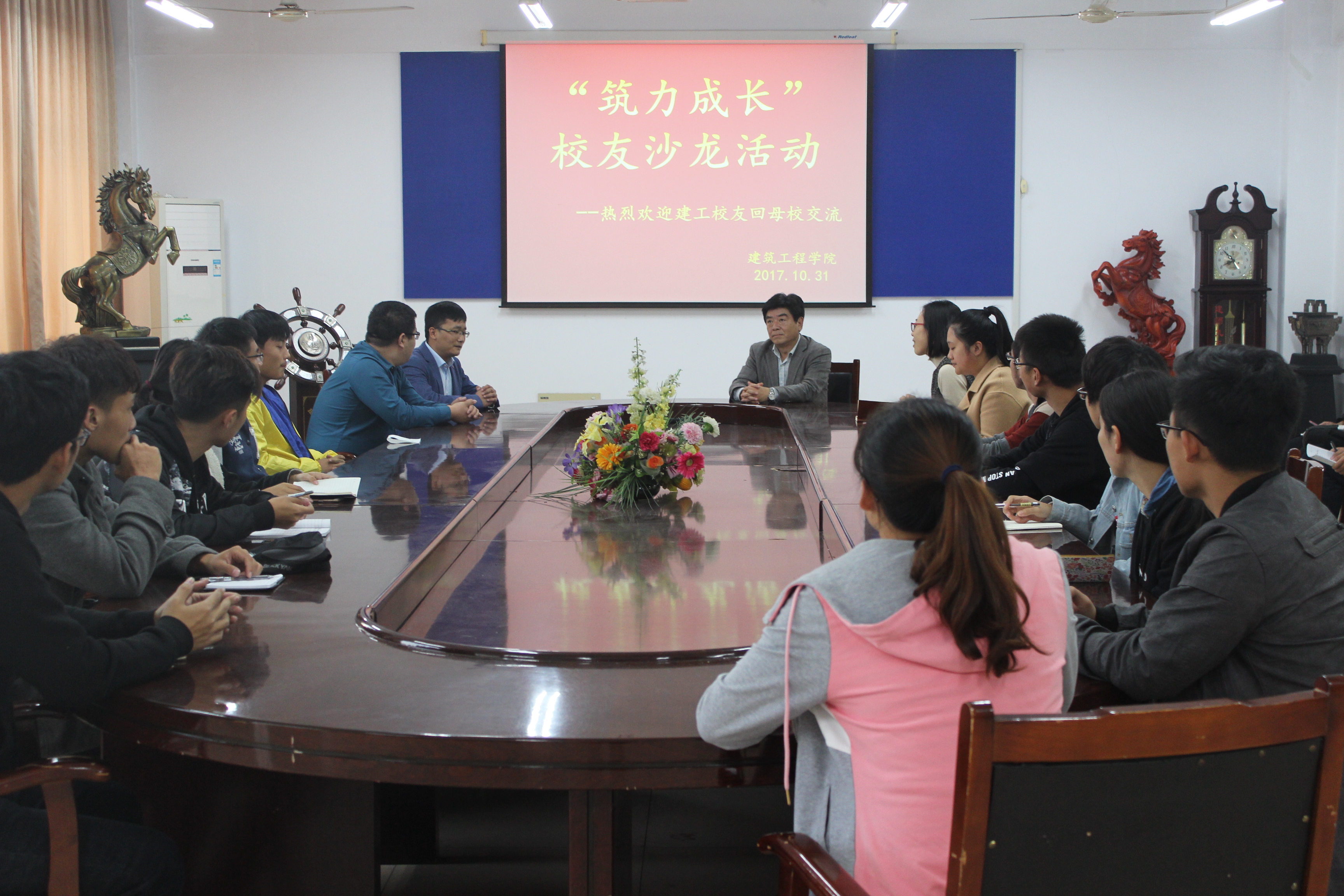 10月31日,欧洲杯买足球软件于工程楼会议室举办“筑力成长”校友座谈活动。此次活动邀请2014届优秀校友王培、魏云强与同学们进行面对面座谈。院党委书记田义轲出席并讲话,团委书记刘园园、辅导员林鑫、江守林以及学生会干部代表参加活动。